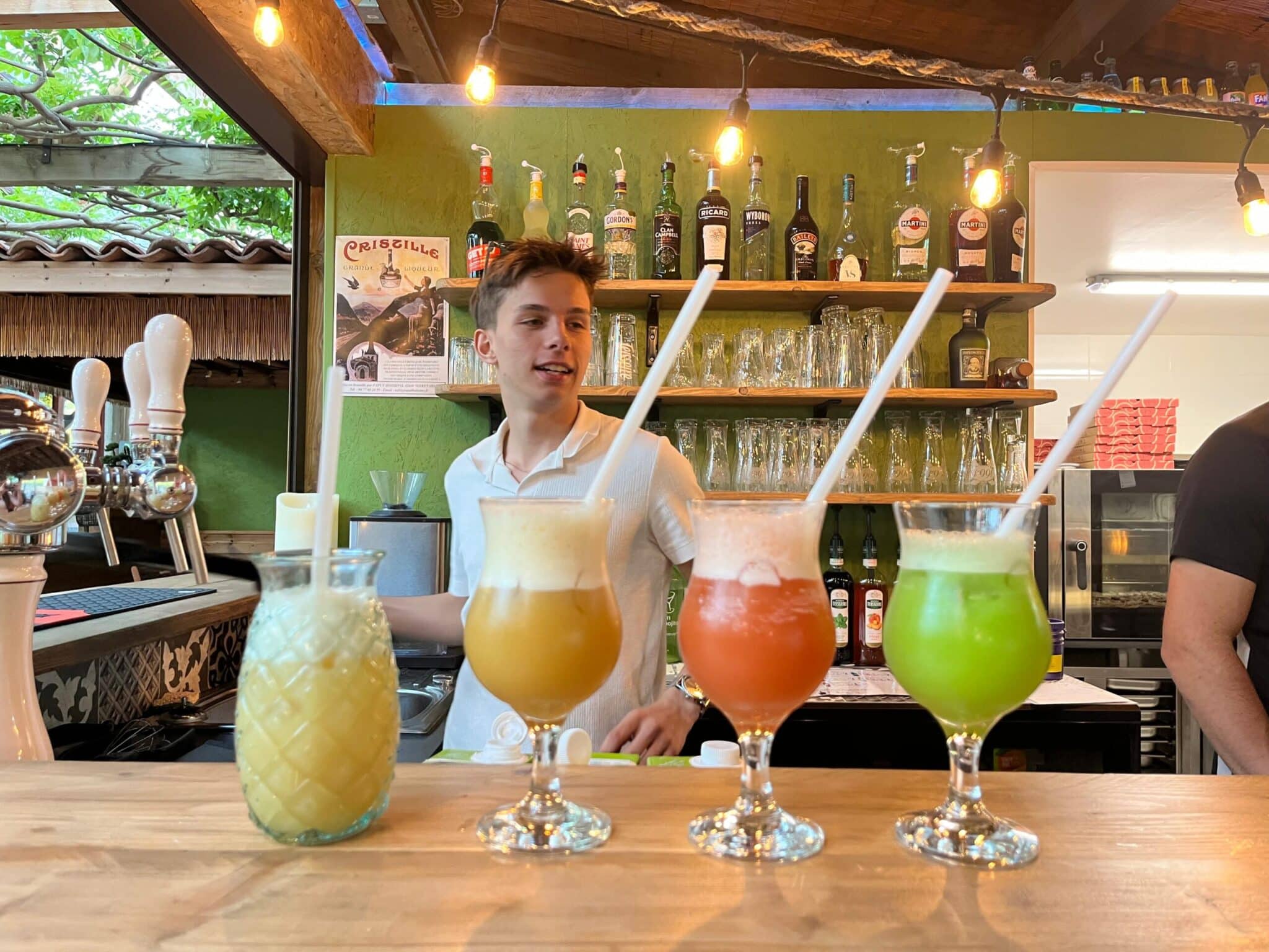 Venez-vous désaltérer dans un décor idyllique sous l’ombre apaisante de la glycine qui recouvre notre bar. Ouvert tous les jours en juillet et août, le bar vous accueille de 8h30 à 12h00 et de 15h30 à 23h00, avec un service boulangerie pour vos viennoiseries et pains frais (à commander la veille).