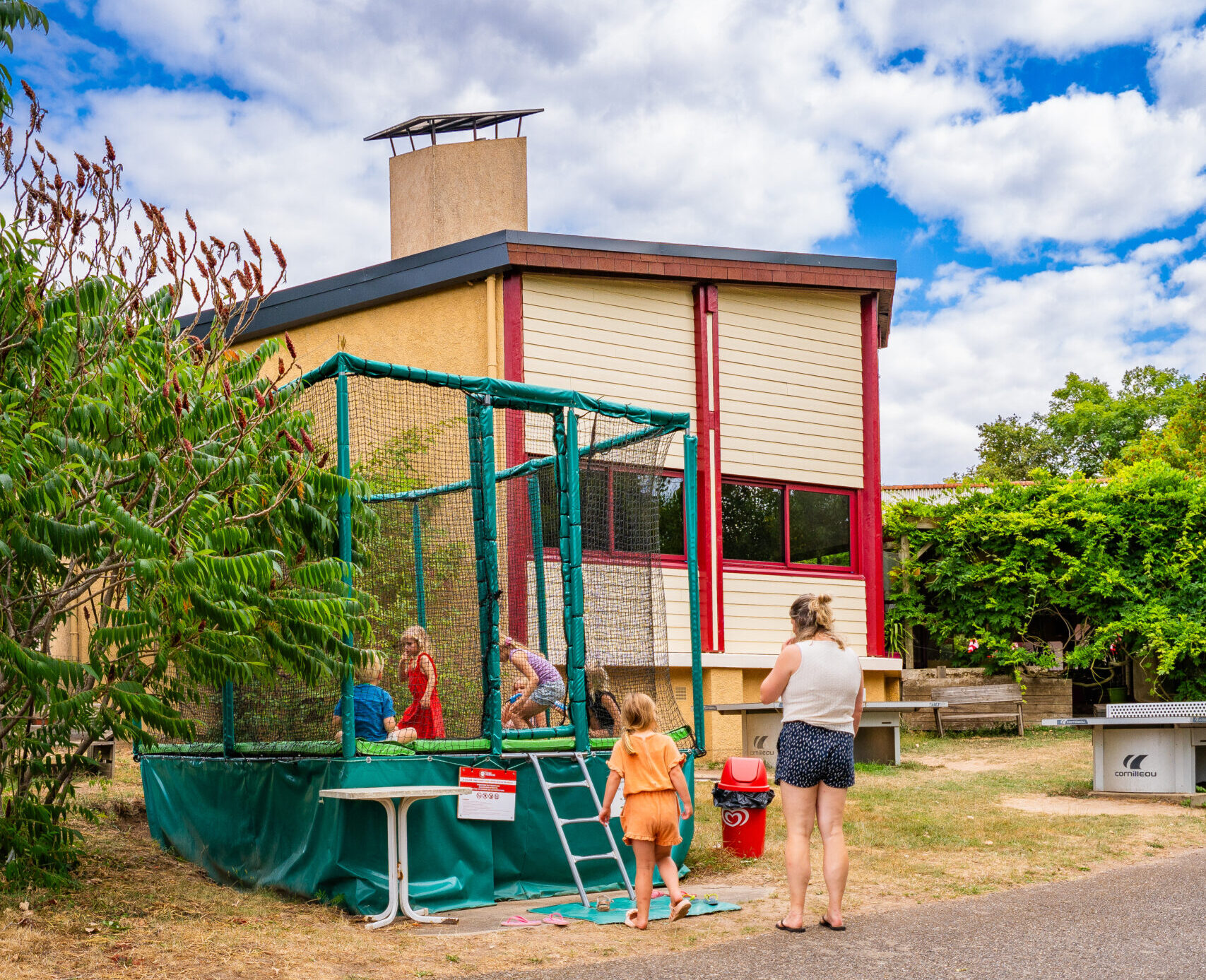 - Ein Trampolin und ein Spielplatz für die Kleinen.