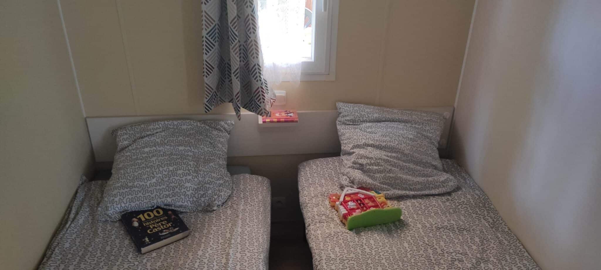 1 Schlafzimmer mit einem Doppelbett (140 x 190 cm) für einen erholsamen Schlaf. 1 Schlafzimmer mit zwei Einzelbetten (80 x 190 cm), ideal für Kinder oder Gäste.